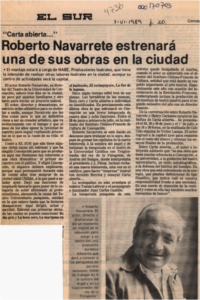 Obra de Roberto Navarrete será estrenada el miércoles [artículo].