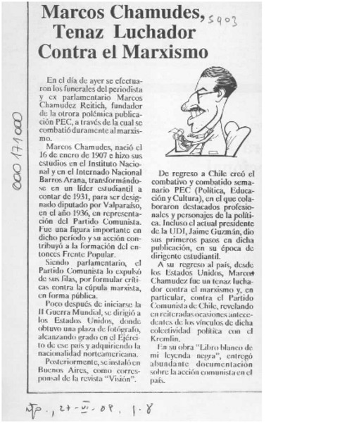 Marcos Chamudes, tenaz luchador contra el marxismo [artículo].