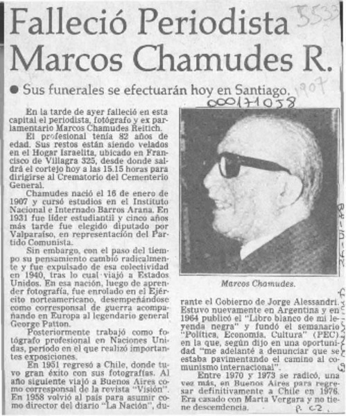 Falleció el periodista Marcos Chamudes Reitich [artículo].