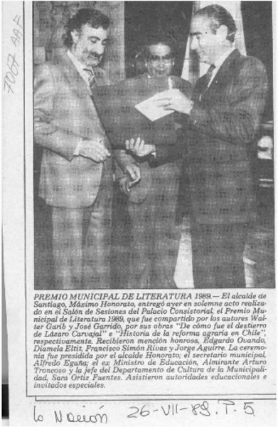 El Premio Municipal de literatura 1989 lo compartieron una novela y un ensayo [artículo].