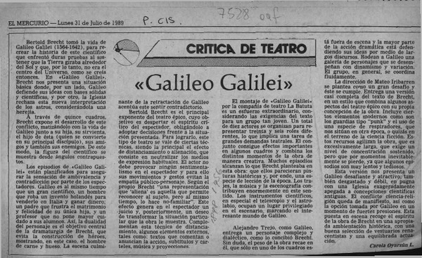 Autores chilenos - BRECHT, BERTOLT - GALILEO GALILEI - Iribarren, Juan Mateo - Autores alemanes
