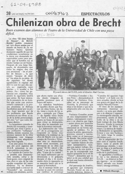 Chilenizan obra de Brecht [artículo] Wilfredo Mayorga.
