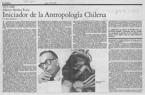 Alberto Medina Rojas 1915-1989 [artículo] Manuel Dannemann.