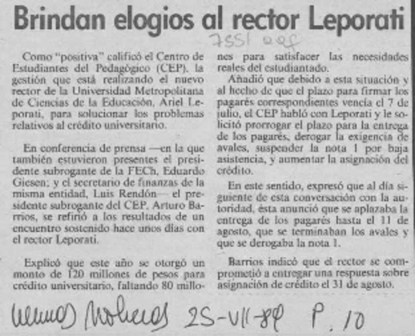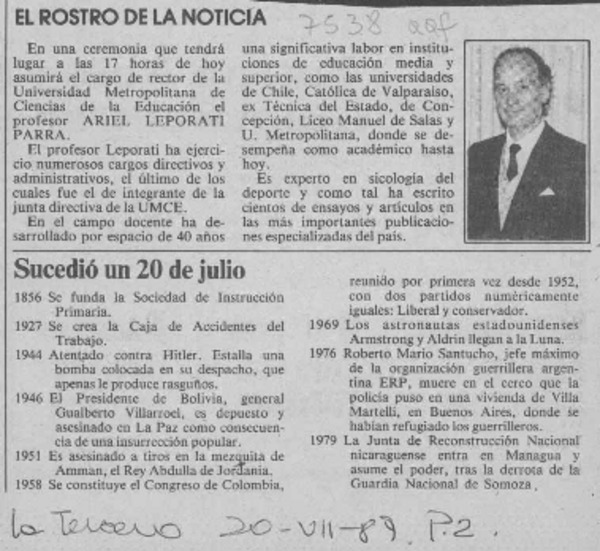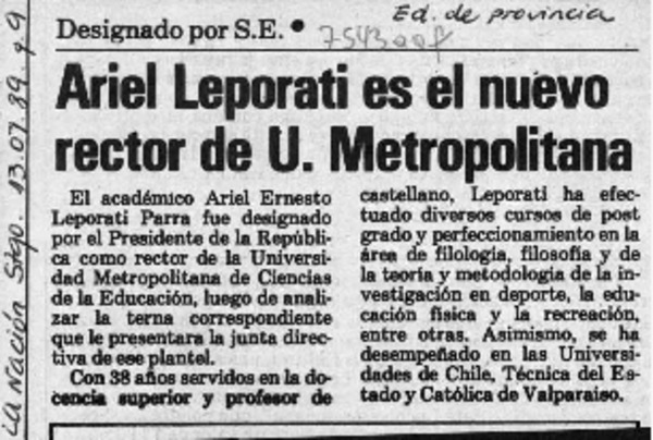 Ariel Leporati es el nuevo Rector de U. Metropolitana [artículo].