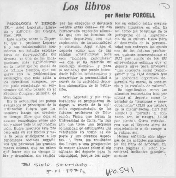 Autores chilenos - Leporati, Ariel - Psicología y deporte de hoy