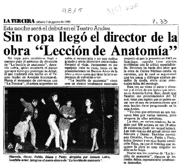 Sin ropa llegó el director de la obra "Lección de anatomía" [artículo].