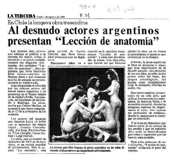 Al desnudo actores argentinos presentan "Lección de anatomía" [artículo].