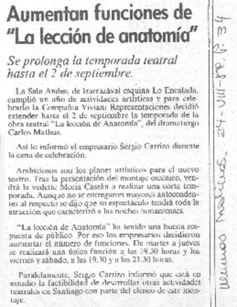 "La Lección de anatomía" se estrena en T. Andes [artículo].
