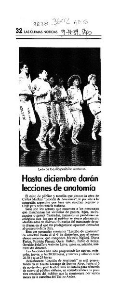 Hasta diciembre darán "Lecciones de anatomía" [artículo].