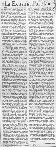 "La extraña pareja" [artículo] Agustín Letelier.