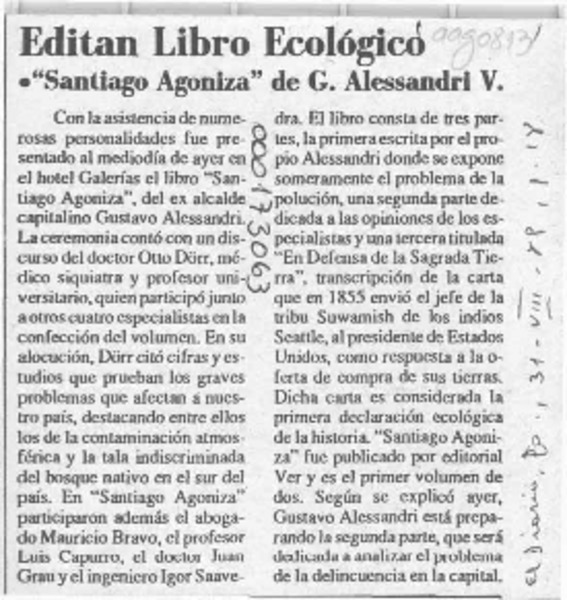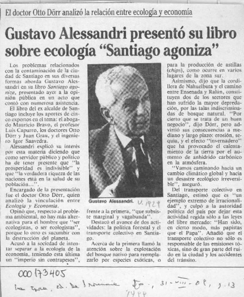Gustavo Alessandri presentó su libro sobre ecología "Santiago agoniza" [artículo].