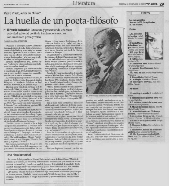 Entrevistas - Pueller, Claudio - Prado, Pedro - Autores chilenos - Alsino, revelación de un destino alado - Alsino