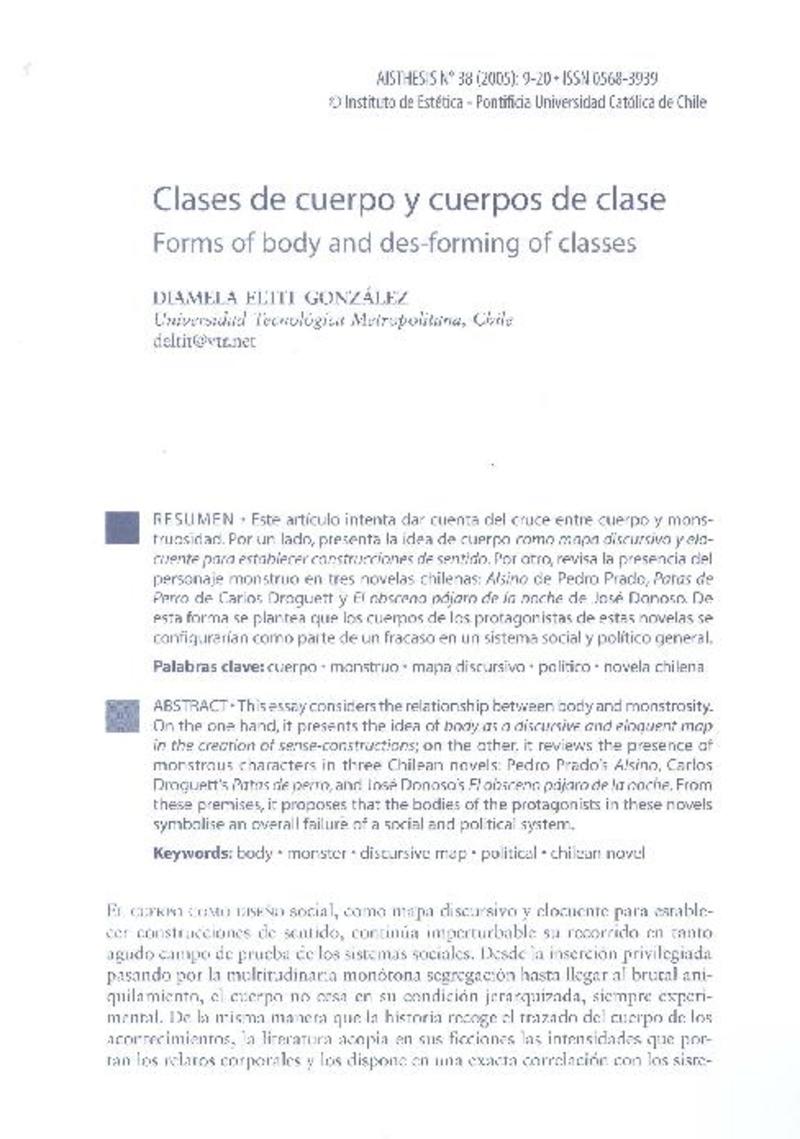 Clases de cuerpo y cuerpos de clase [artículo] Diamela Eltit González.