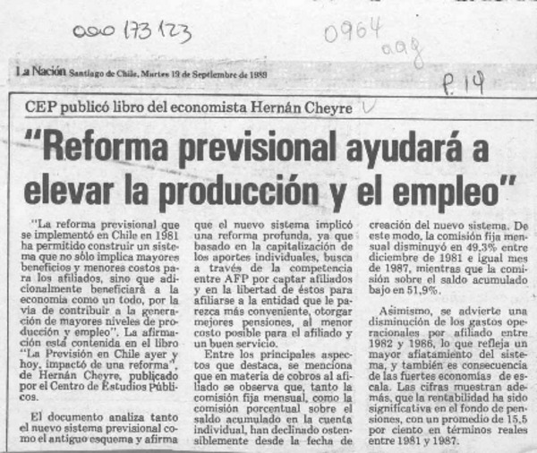 "Reforma previsional ayudará a elevar la producción y el empleo" [artículo].