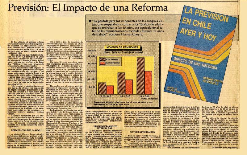 CHEYRE V., HERNAN - PREVISION EN CHILE AYER Y HOY, IMPACTO DE UNA REFORMA, LA