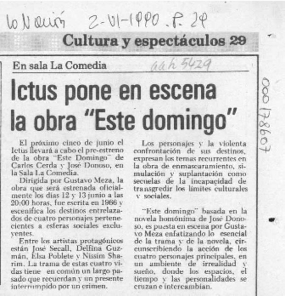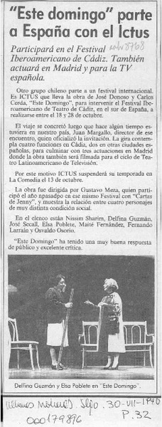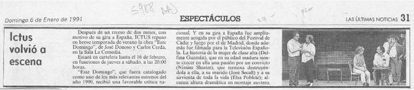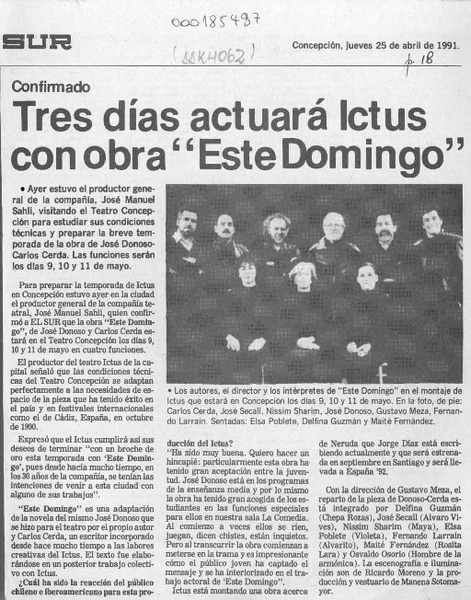 Tres días actuará Ictus con obra "Este domingo" [artículo].