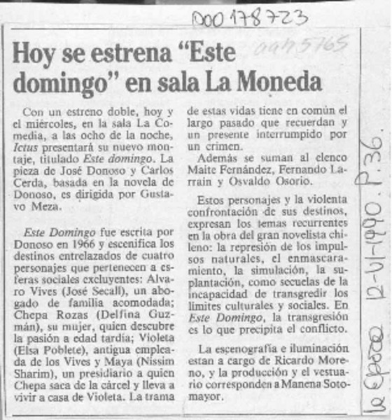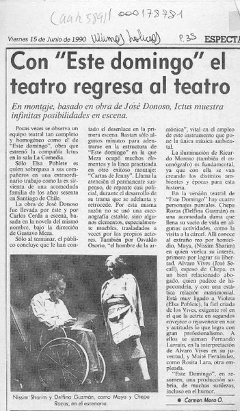 Con "Este domingo" el teatro regresa al teatro [artículo] Carmen Mera O.
