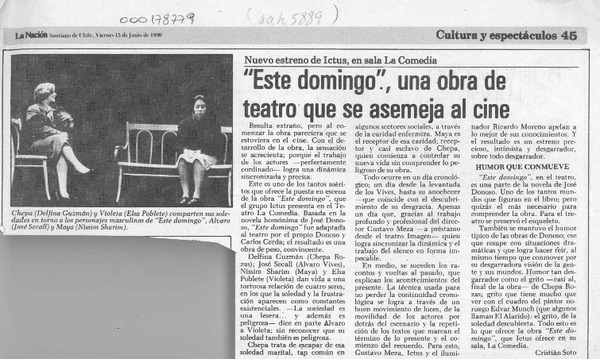 "Este domingo", una obra de teatro que se asemeja al cine [artículo] Cristián Soto.