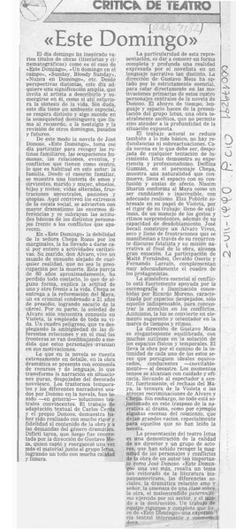 "Este domingo" [artículo] Carola Oyarzún L.