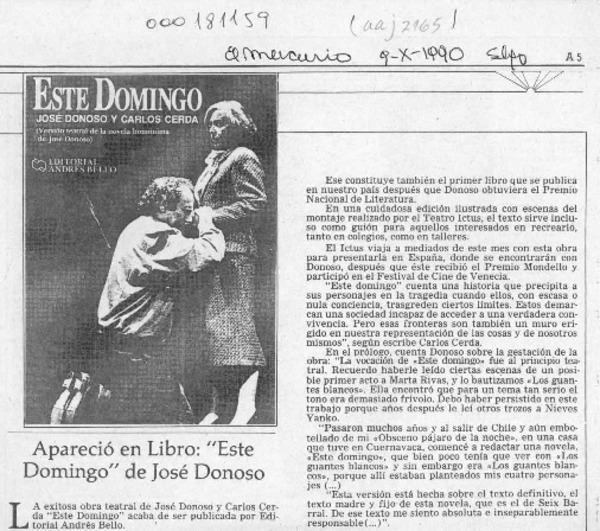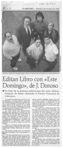 Editan libro con "Este domingo", de J. Donoso [artículo].