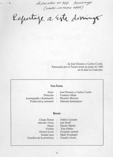 Obra de José Donoso ensaya Ictus [artículo].