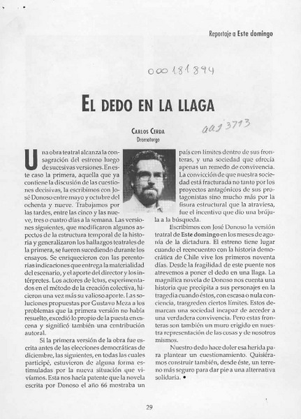 El dedo en la llaga [artículo] Carlos Cerda.