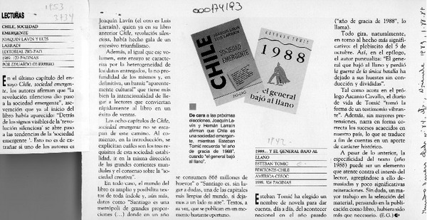 LAVIN, JOAQUIN - TOMIC ERRAZURIZ, ESTEBAN - 1988 -- Y EL GENERAL BAJO AL LLANO - LARRAIN ARROYO, LUIS - CHILE, SOCIEDAD EMERGENTE