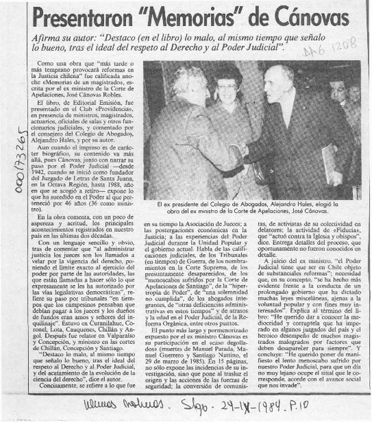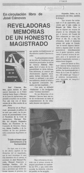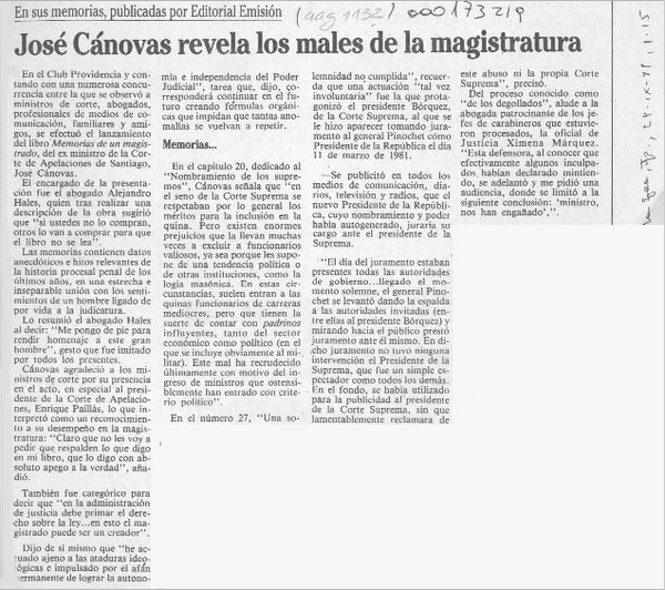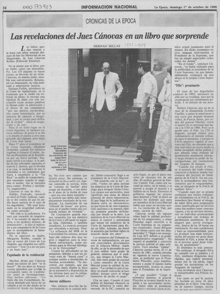 Las revelaciones del juez Cánovas en un libro que sorprende [artículo] Hernán Millas.