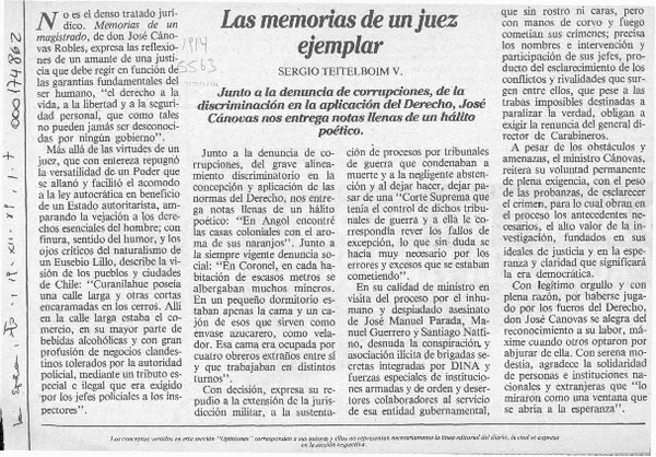 Las memorias de un juez ejemplar [artículo] Sergio Teitelboim V.