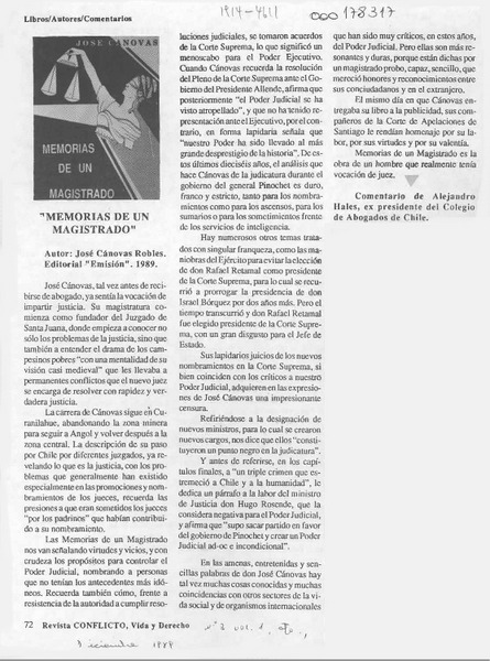 "Memorias de un magistrado" [artículo] Alejandro Hales.