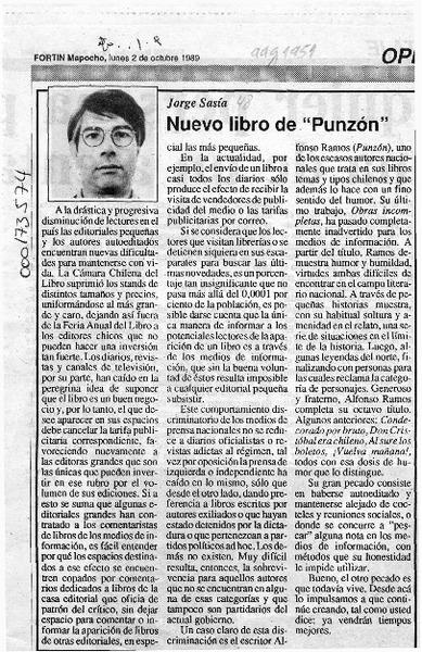 Nuevo libro de "Punzón" [artículo] Jorge Sasía.