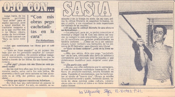 Ojo con... Sasía : [entrevista] [artículo] Robustiano.