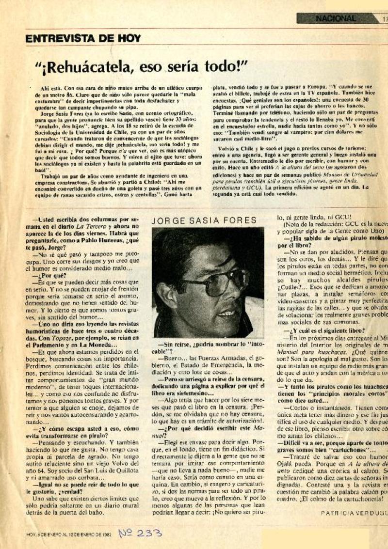 Rehuácatela, eso sería todo!": [entrevista] [artículo] Patricia Verdugo.