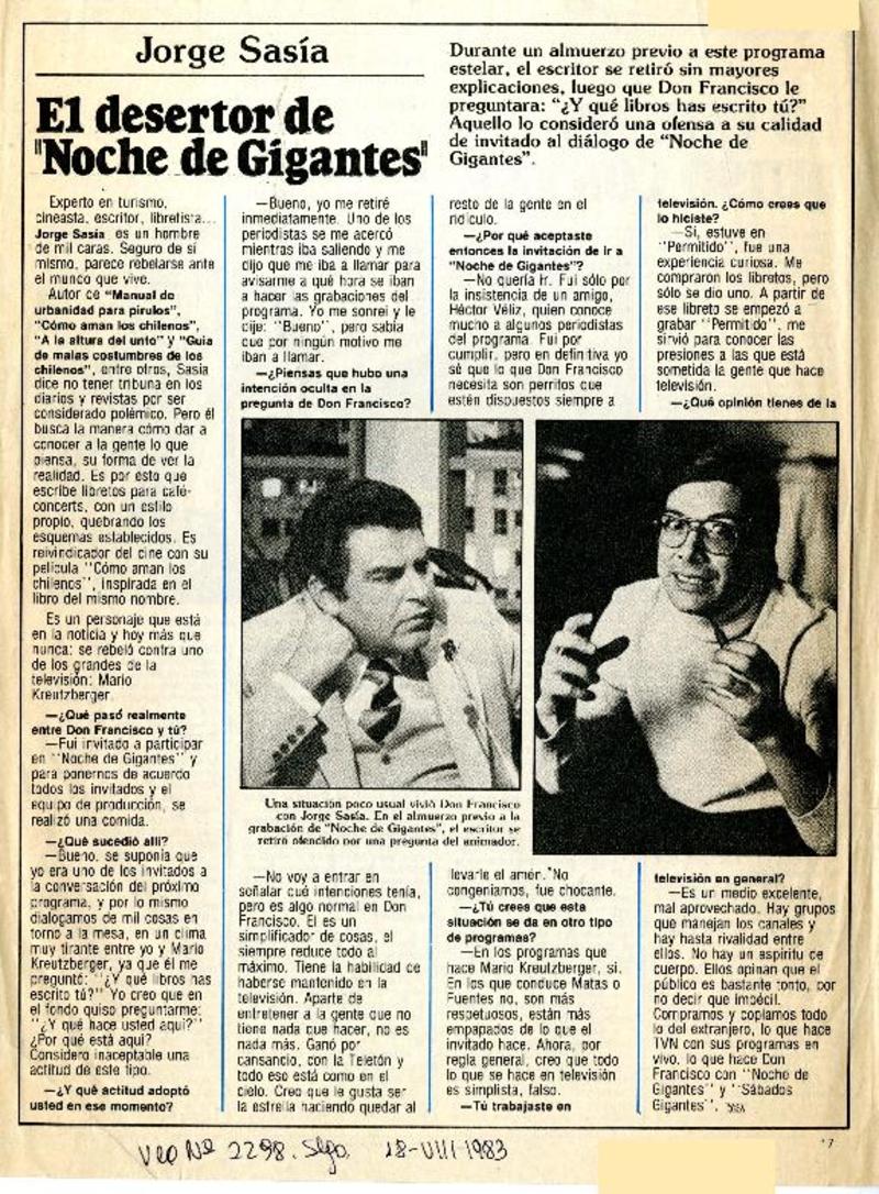 Autores chilenos - [entrevista] - Kreutzberger, Mario - Sasia, Jorge - Vea (Santiago, Chile)--