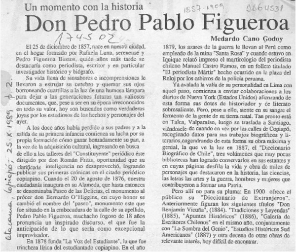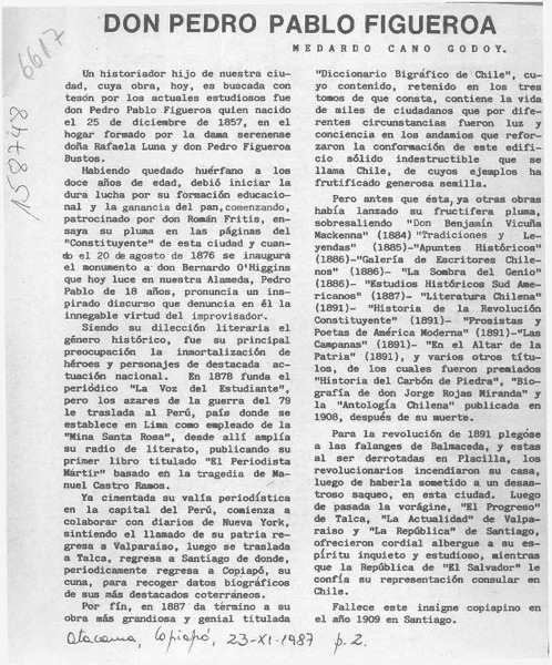Don Pedro Pablo Figueroa [artículo] Medardo Cano Godoy.