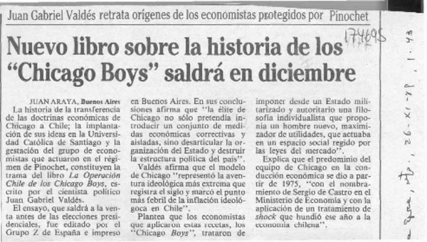 Nuevo libro sobre la historia de los "Chicago boys" saldrá en diciembre [artículo] Juan Araya.
