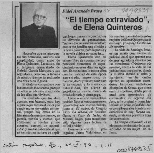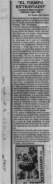 "El tiempo extraviado", de Elena Quinteros [artículo] Fidel Araneda Bravo.