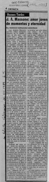J. A. Massone, amor joven de momentos y eternidad [artículo] Horacio Hernández Anderson.