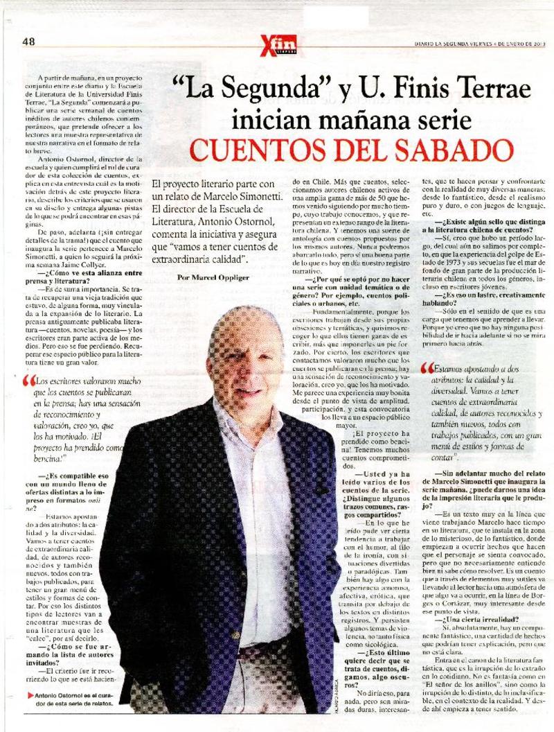 "La Segunda" y Finis Terrae inician mañana serie Cuentos del sábado [artículo] Marcel Oppliger