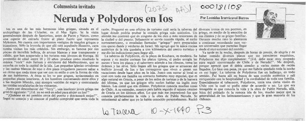 Neruda y Polydoros en Ios [artículo] Leonidas Irarrázaval Barros.