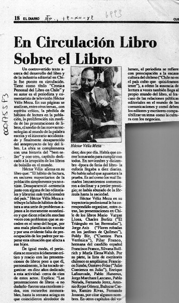 VELIS MEZA, HECTOR - CRONICA PERSONAL DEL LIBRO EN CHILE
