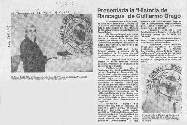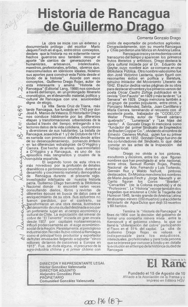 Historia de Rancagua, de Guillermo Drago [artículo] Gonzalo Drago.