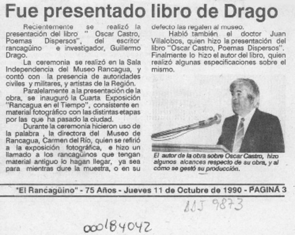 DRAGO, GUILLERMO - HISTORIA DE RANCAGUA