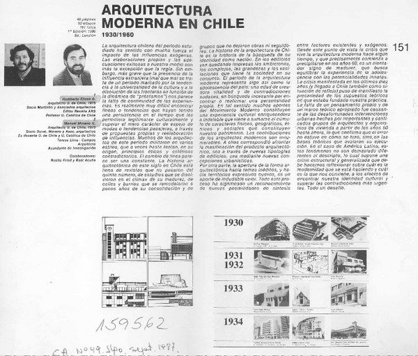 MORENO GUERRERO, MANUEL - ELIASH DIAZ, HUMBERTO - ARQUITECTURA MODERNA EN CHILE 1930-1960
