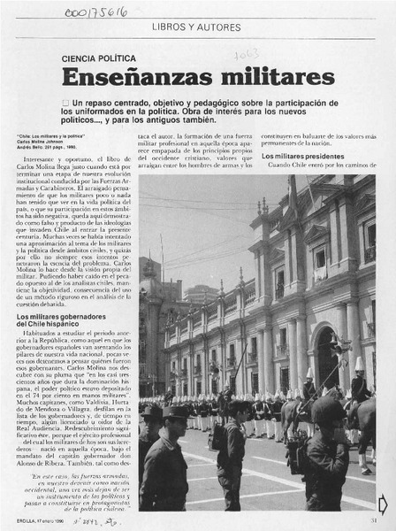 Enseñanzas militares [artículo] Juan Ignacio González Errázuriz.