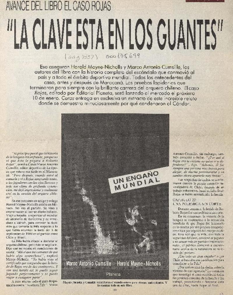 Autores chilenos - Mayne-Nicholls, Harold - Caso Rojas, un engaño mundial, El - Marín, Edgardo - Cumsille, Marco Antonio - Historia de los campeones, La - Caso Rojas, un engaño mundia, El