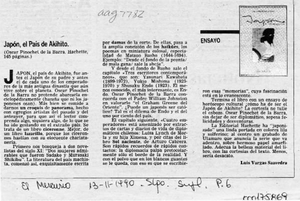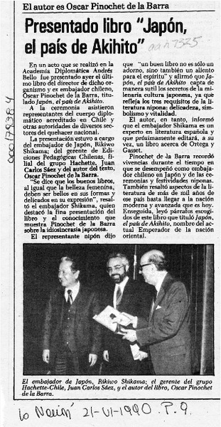 Lanzan libro sobre Japón de Oscar Pinochet de la Barra [artículo].