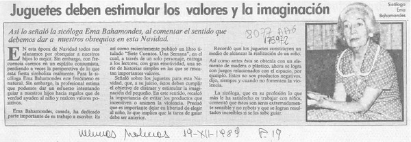 Juguetes deben estimular los valores y la imaginación [artículo].
