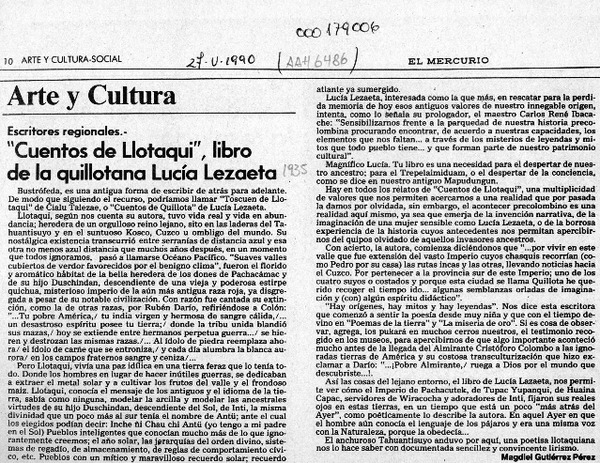 "Cuentos de Llotaqui", libro de la quillotana Lucía Lezaeta [artículo] Magdiel Gutiérrez Pérez.
