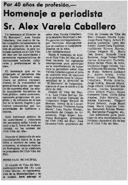 Alex Varela y sus 40 años de periodismo [artículo] Fernando Durán V.